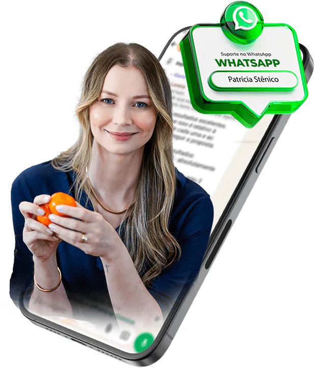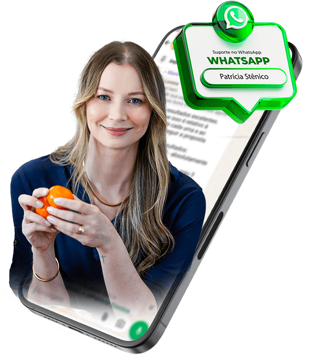 Você terá acesso direto à Nutricionista Patrícia Stênico e sua equipe através do grupo exclusivo no WhatsApp, além das mentorias mensais para tirar todas as suas dúvidas e ajustar sua rota.